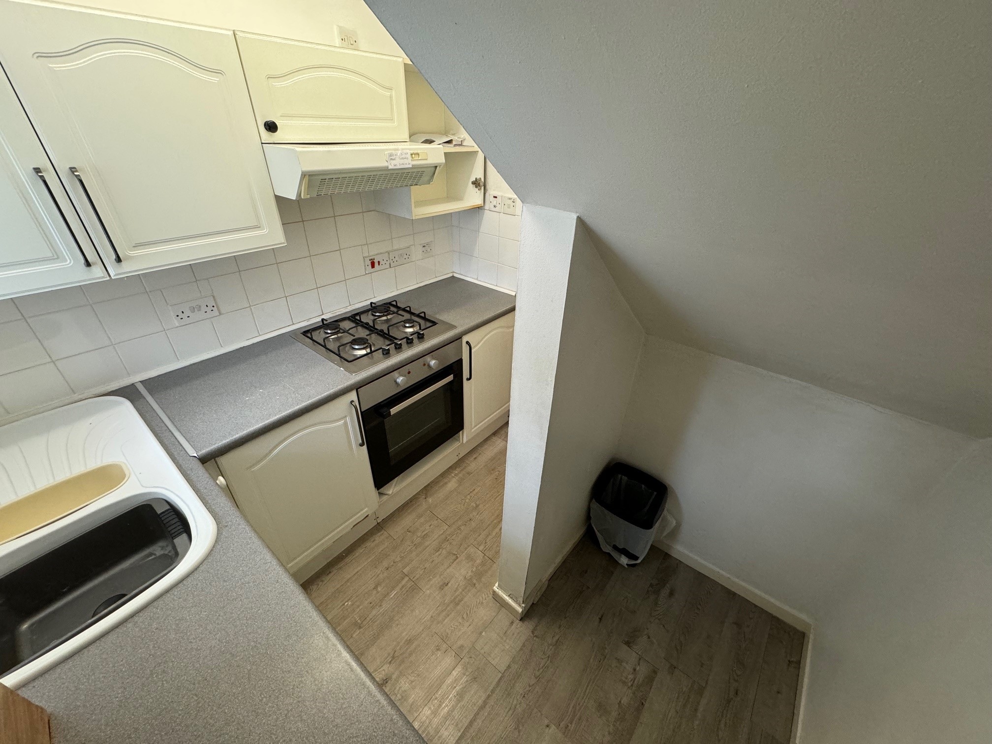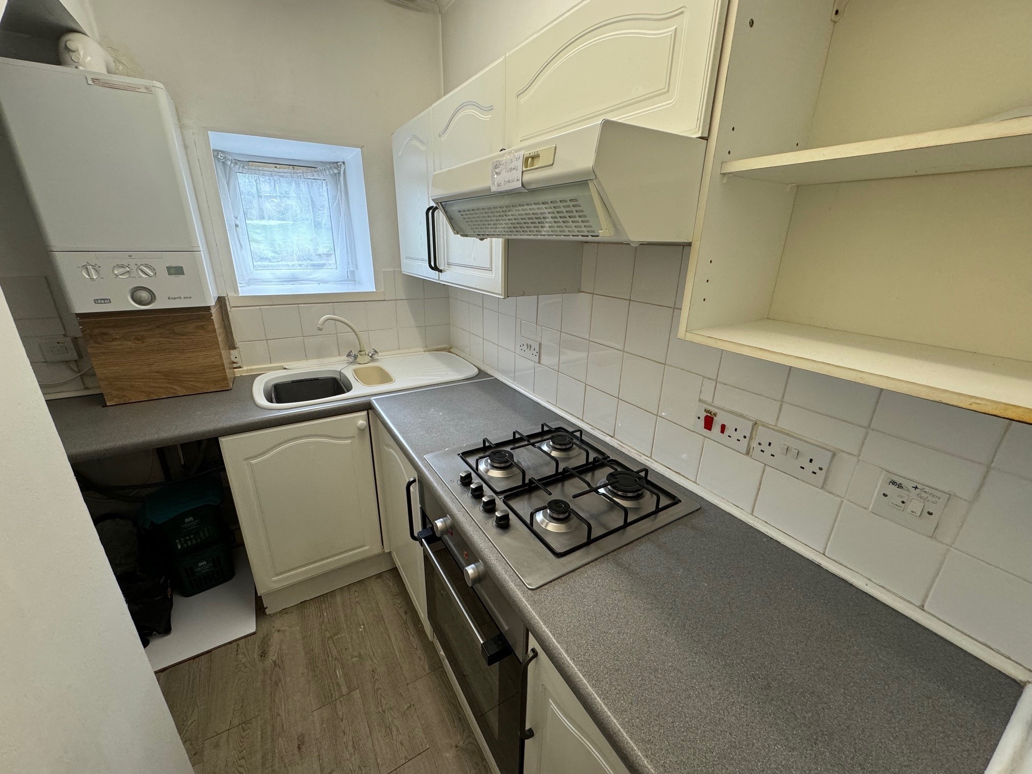 Kitchen: L-shaped kitchenette with base and wall units with co-ordinating work surface, integrated four ring gas hob with new electric oven below and extractor above. Wall mounted Combi central heating boiler, washing machine, tumble dryer and fridge/freezer, extractor fan to outside linked to lighting switch, fluorescent strip lights and vinyl flooring. N.B. All white goods are to be included in the sale.